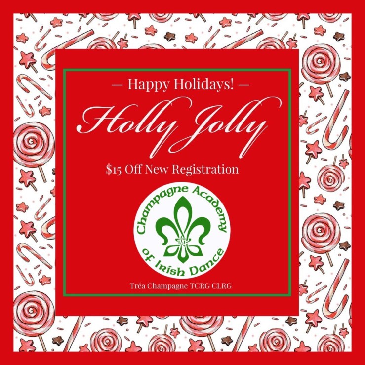We have some spots open in our upcoming 5-week Beginner January session – a great time to get your jig ready for St.Patrick’s Day! Use the code “HOLLYJOLLY” to save $15 off your family’s online registration! Offer ends Friday November 30th or until class is full.