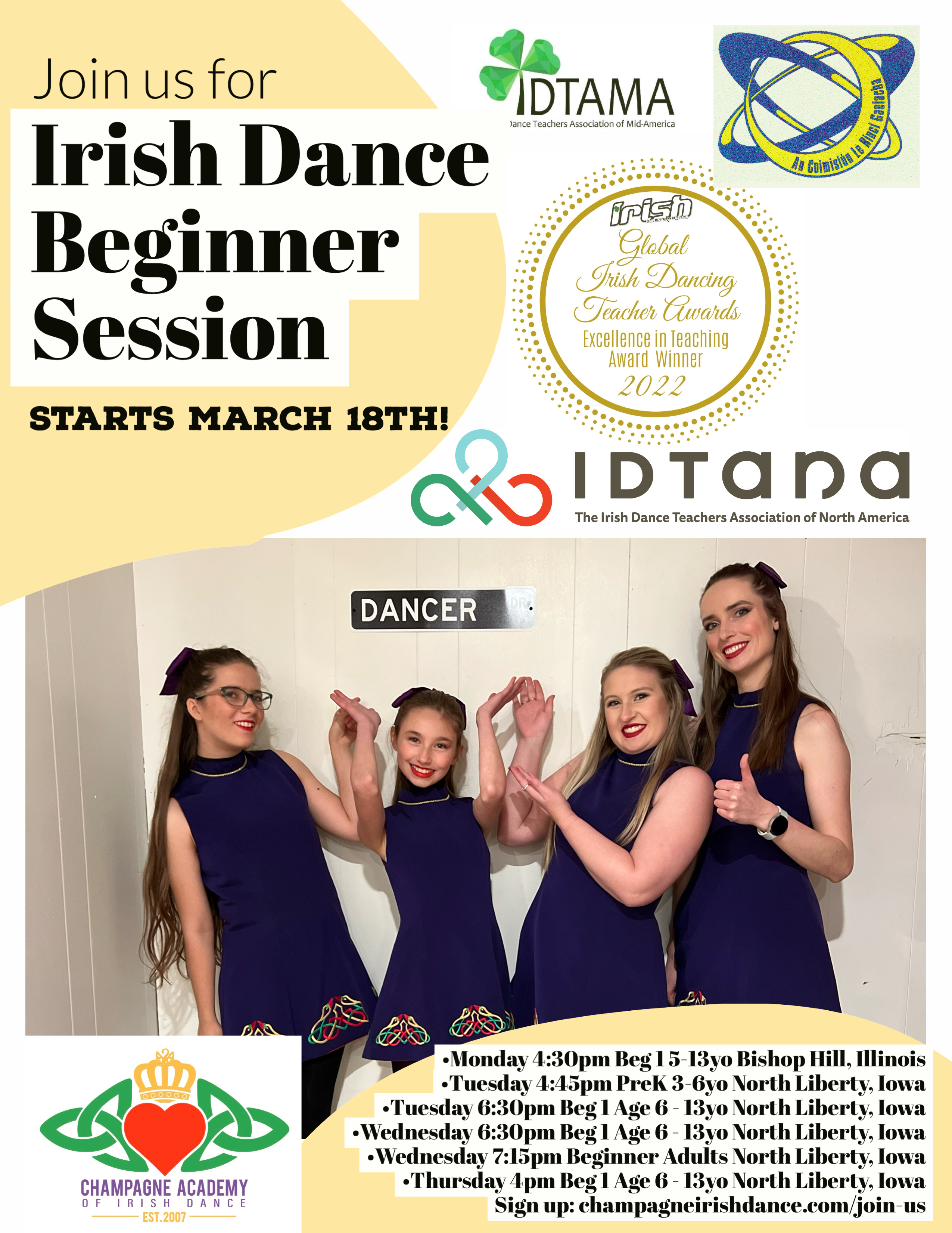 Our next session starts March 18th! Our sessions generally on going and are approximately 5-10 weeks. Our March 18th session is 5 Weeks and would love to have some new friends join us! We have classes for ages 3 & up. We also have a new class on March 11th – Friend and Family Ceili Class! It’s a one off class to learn something new and have fun! We have one more 5 week session to finish the school year before we start our summer schedule. Please go to the ‘JOIN US” tab to view all of our current classes. Please visit our page on Facebook for upcoming performances and events. Hope to see you soon!